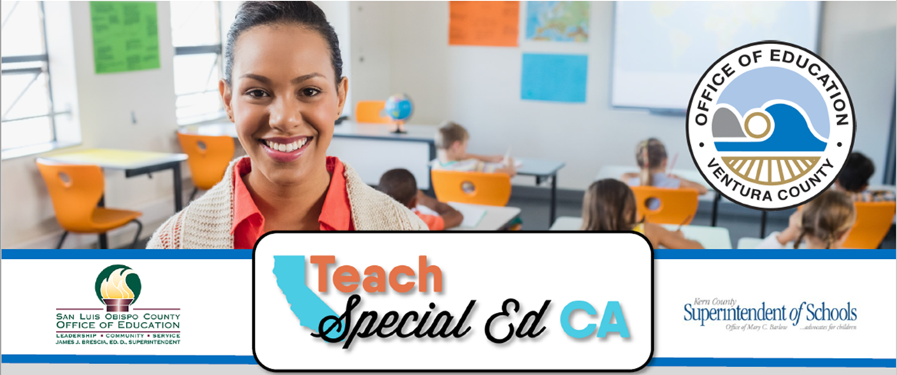 The Ventura County Office of Education offers Teach Special Education CA grant funding. TEACH SPED CA is a program is tailored to recruit and authorize future teachers of Special Education. The Consortium (Kern, San Luis Obispo,and Ventura counties) will pursue a “Build Your Own” model by focusing recruitment efforts on local residents with roots in the community, thereby better-ensuring retention as the Consortium builds a sustainable pipeline of special education teachers. Tuition assistance is available to obtain or clear an Education Specialist Credential, intern in a special education classroom, or adding an Orthopedic Impairment (OI) Added Authorization to an existing Education Specialist Credential.