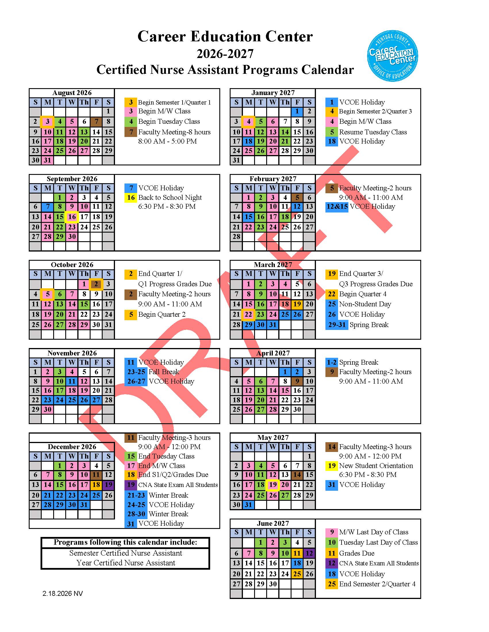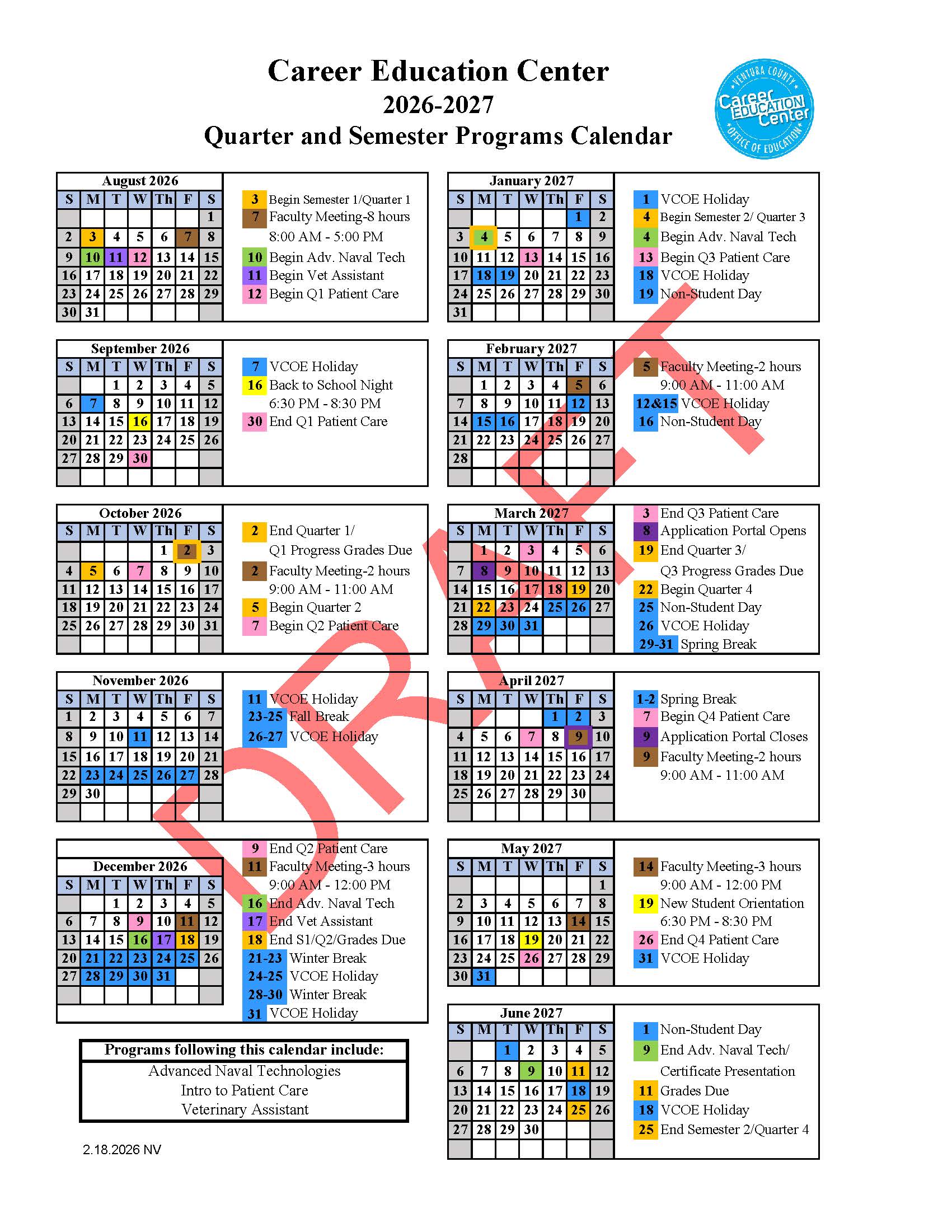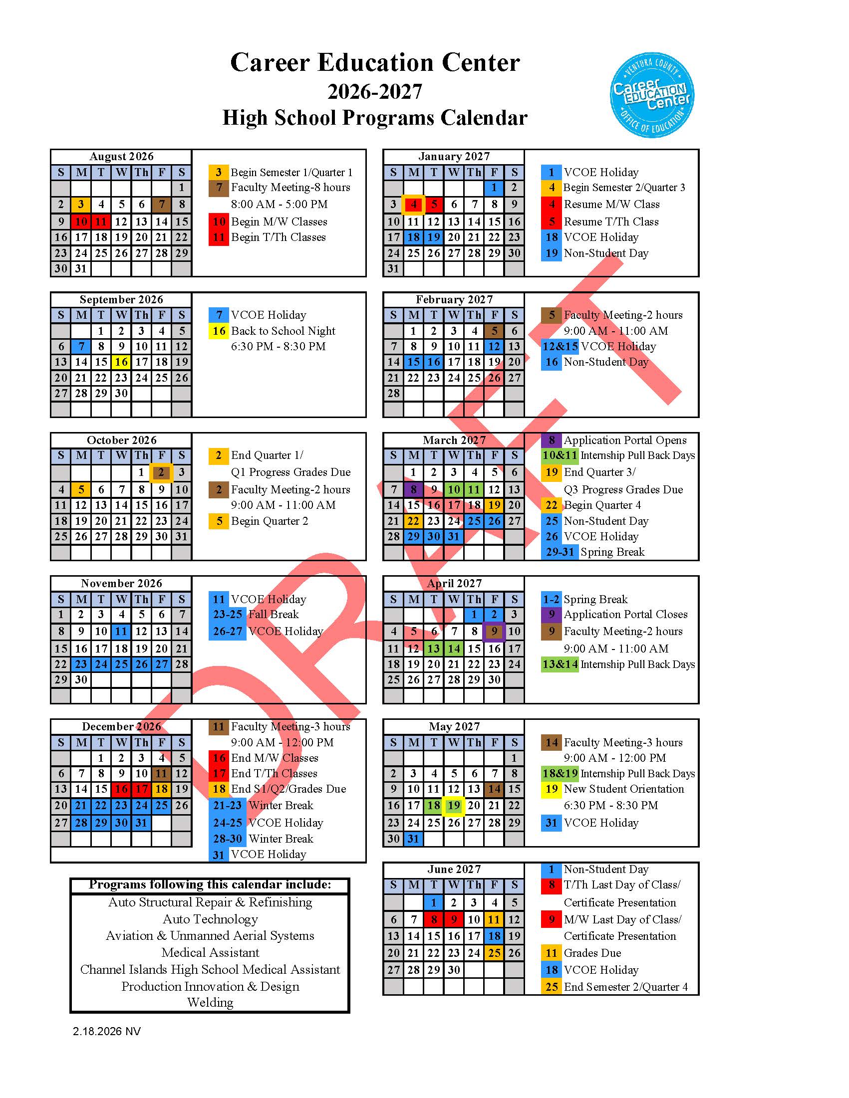 Please scroll down to find the calendar for your program. Each calendar lists the programs that follow that calendar. Click here for a downloadable or printable version.