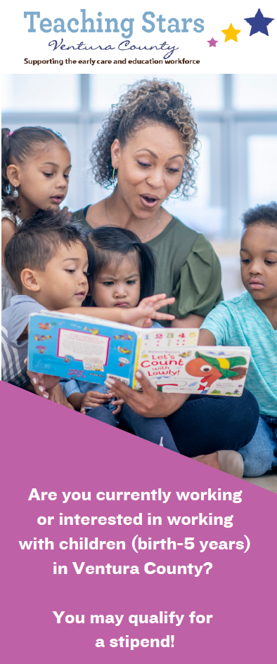 Teaching Stars supports the professional advancement and retention of early learning and care (ELC) educators (including current and prospective transitional kindergarten teachers, state preschool teachers, family child care providers, and others pursuing a degree/coursework in early childhood) by incentivizing activities that promote educator effectiveness, retention, and degree and/or credential attainment.